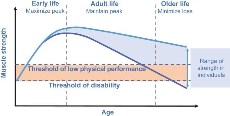 A lack of muscle mass around a joint restricts range of motion and therefore functionality. We become prisoners within our own bodies. Our activities become limited and become even more sedentary.